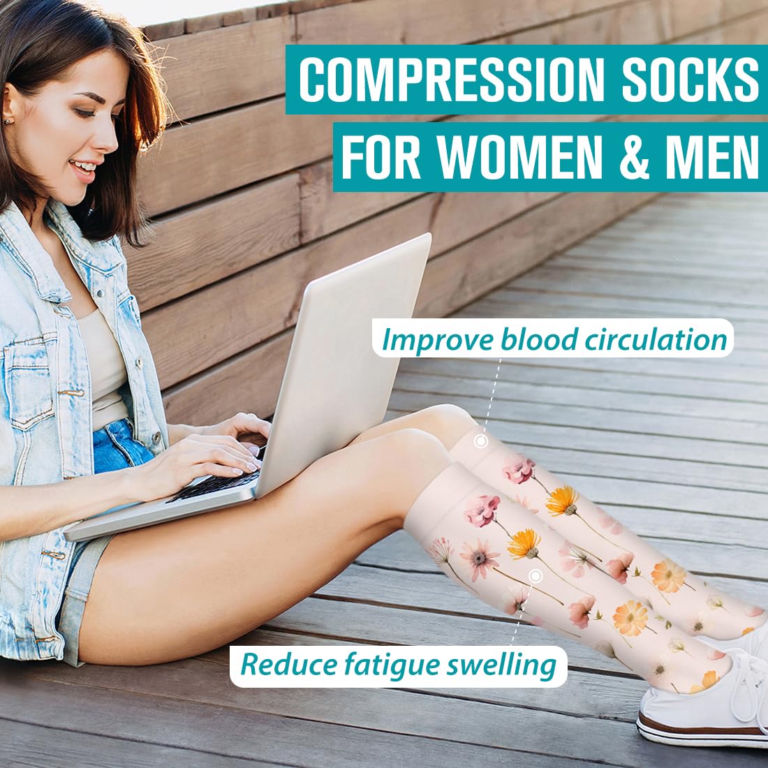 UPGRADE YOUR COMPRESSION SOCKS DRAWER! - With all the tasks of work and family (and of life itself!) we may forget to pay attention to and maintain the health of our legs. Our compression socks are designed to help increase circulation, improve leg and foot comfort, and reduce soreness and swelling, increase energy, All day comfort.Great for long periods of sitting or standing, endurance sports, flying and travel, post-workout recovery, pregnancy, and spider & varicose veins.