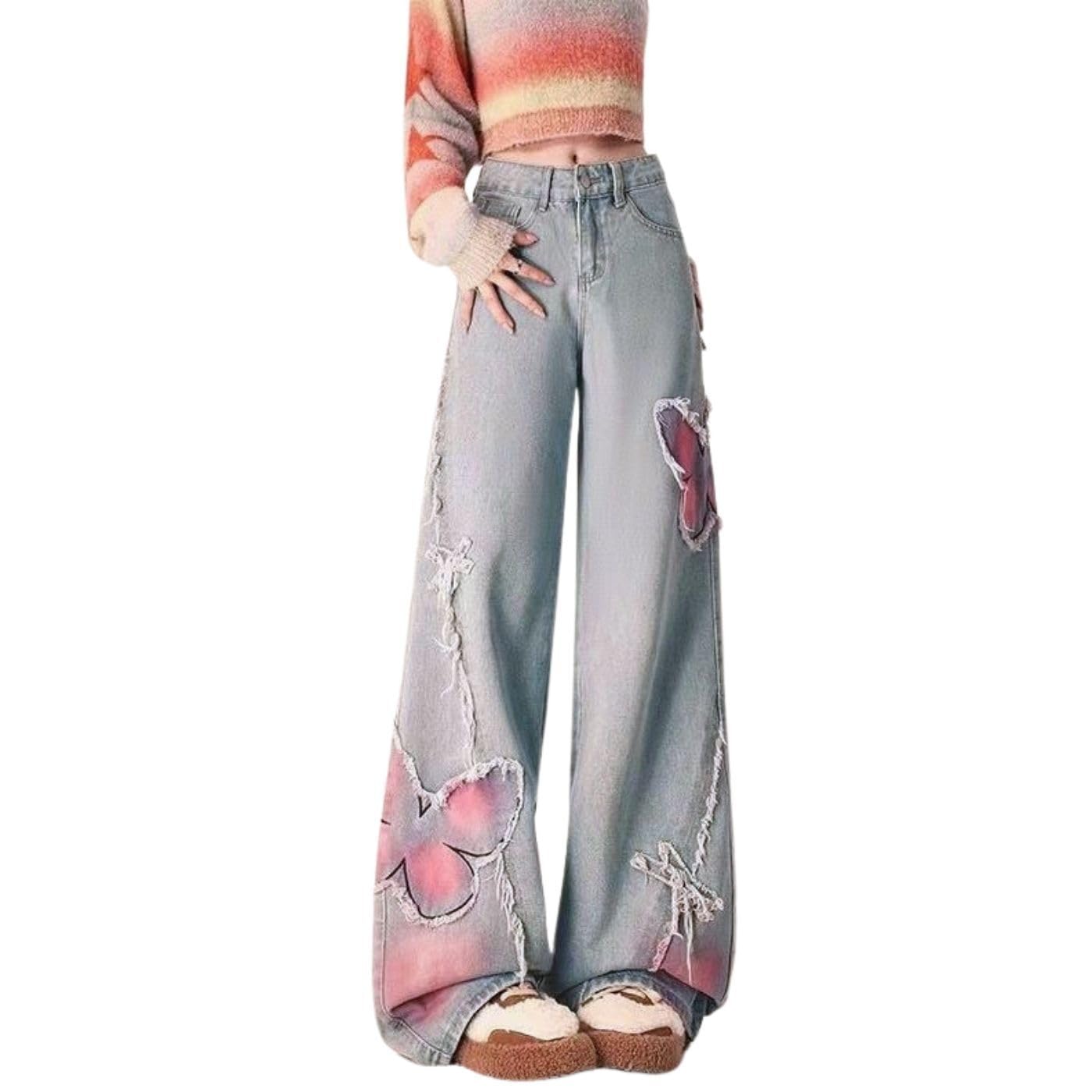 Pants Fabric: Our grunge butterfly jeans are so comfortable,soft, and lightweight skin feel. They'll become your go-to denims jeans