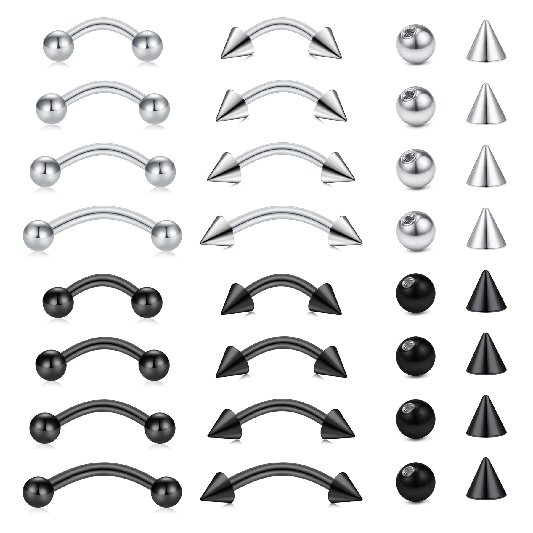 [Size] Bar Thickness: 14 Gauge (1.6mm), hoop inner dia.: 8mm(5/16") 10mm(3/8") 12mm(1/2") 14mm(9/16"); ball/ spikes & replacement piercing ball/spikes: 4mm 5mm