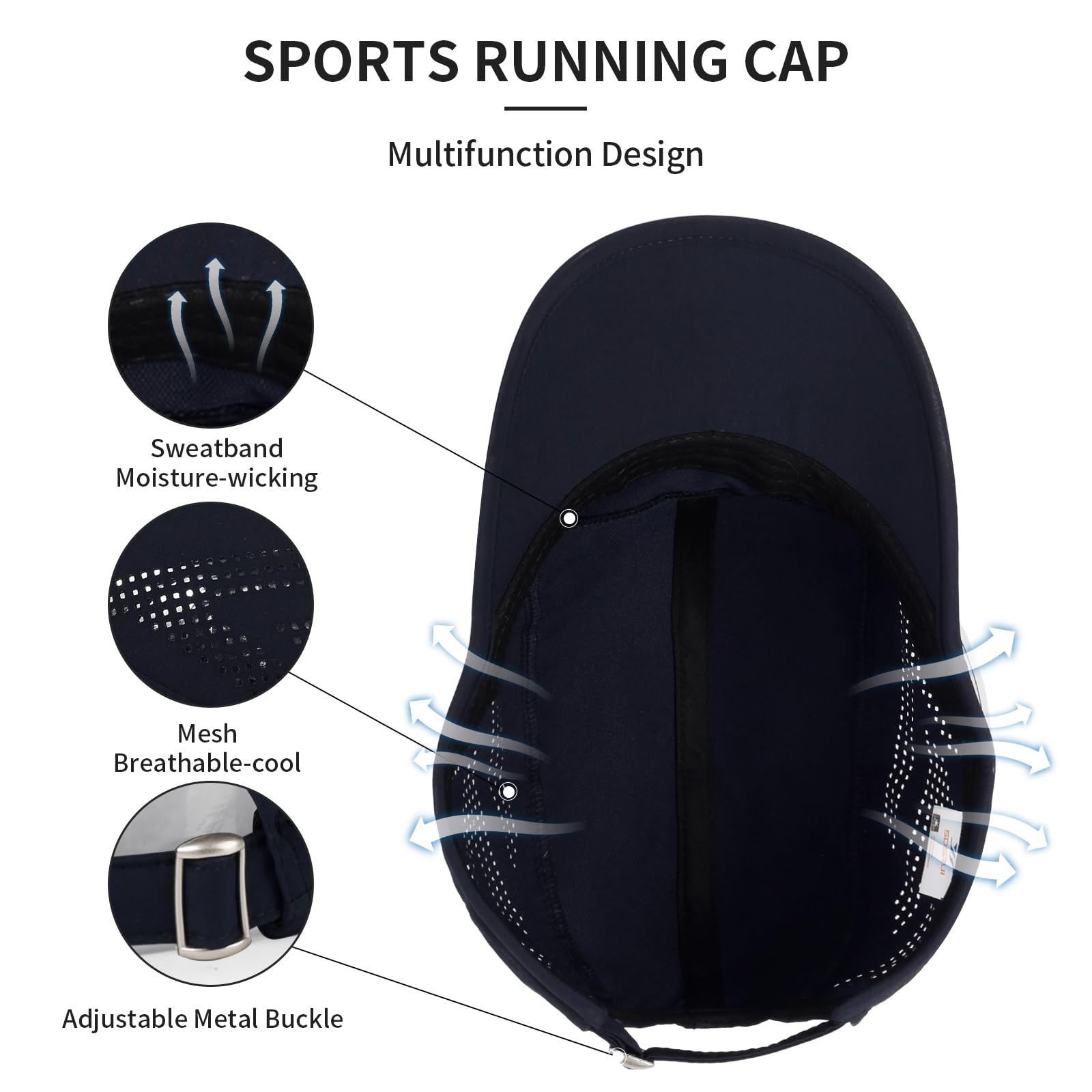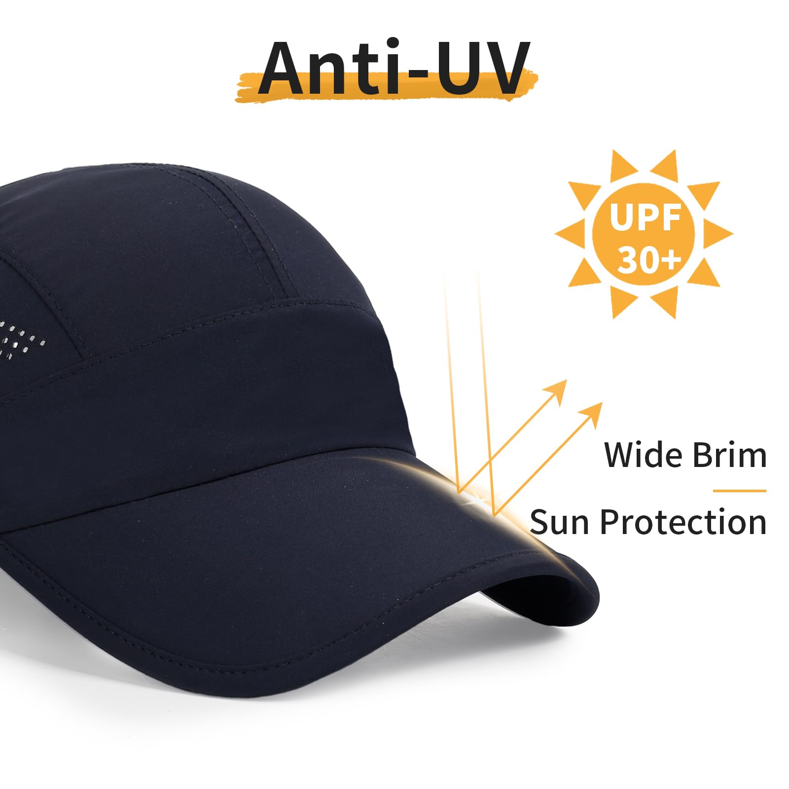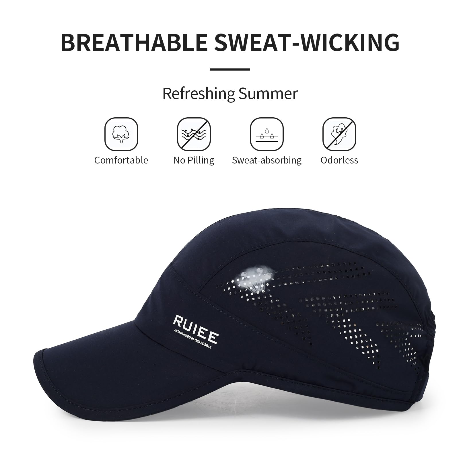 ☀ COOL SPORTS CAP: The inner band of our cooling athletic running hats is a multi-layer dynamic system that continuously pulls moisture from your forehead for quick evaporation, to stop the sweat from dripping into your eyes. The two-side mesh design allows for moisture and heat to easily escape these caps, which not only keeps your cap cool, but you’ll also stay dry.