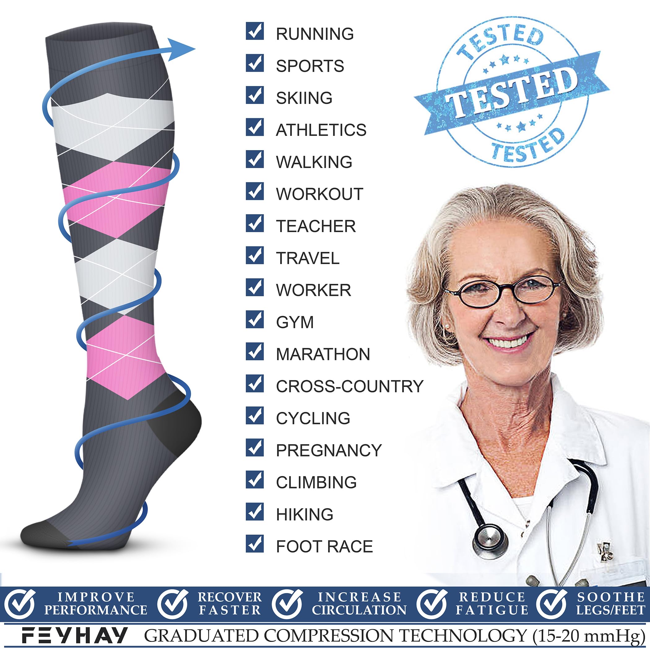 COPPER FIBERS - Copper is a great conductor of electricity, we extended its natural property to rejuvenate blood circulation in your legs through copper fibers capable reviving blood circulation along with providing a 15-20 mmHg compression. Socks are designed according to the structure of the legs and soles of the feet, and have a good effect of relieving fatigue of legs. It offers the most perfect settlement scheme for those who sit for long period during travel or at work.