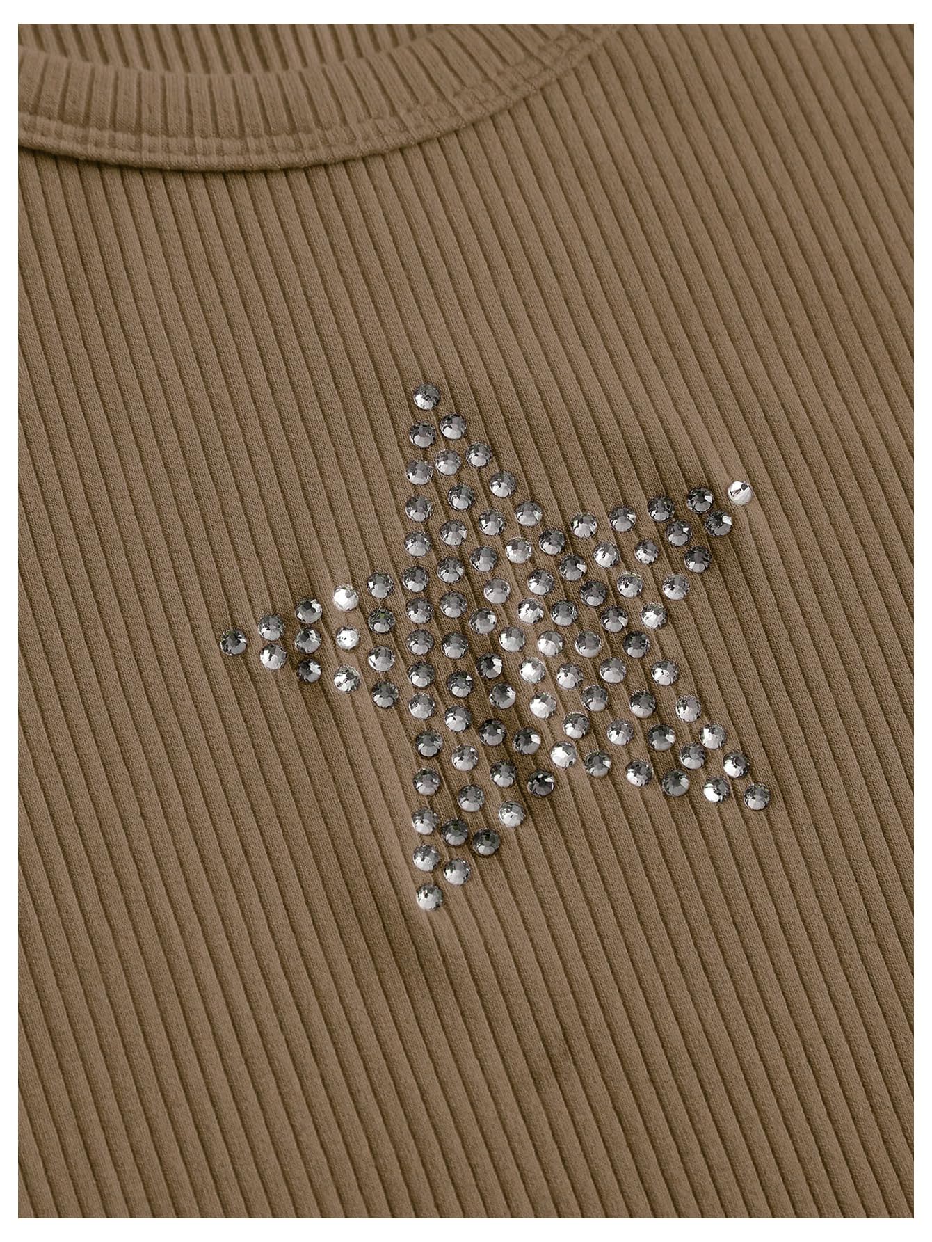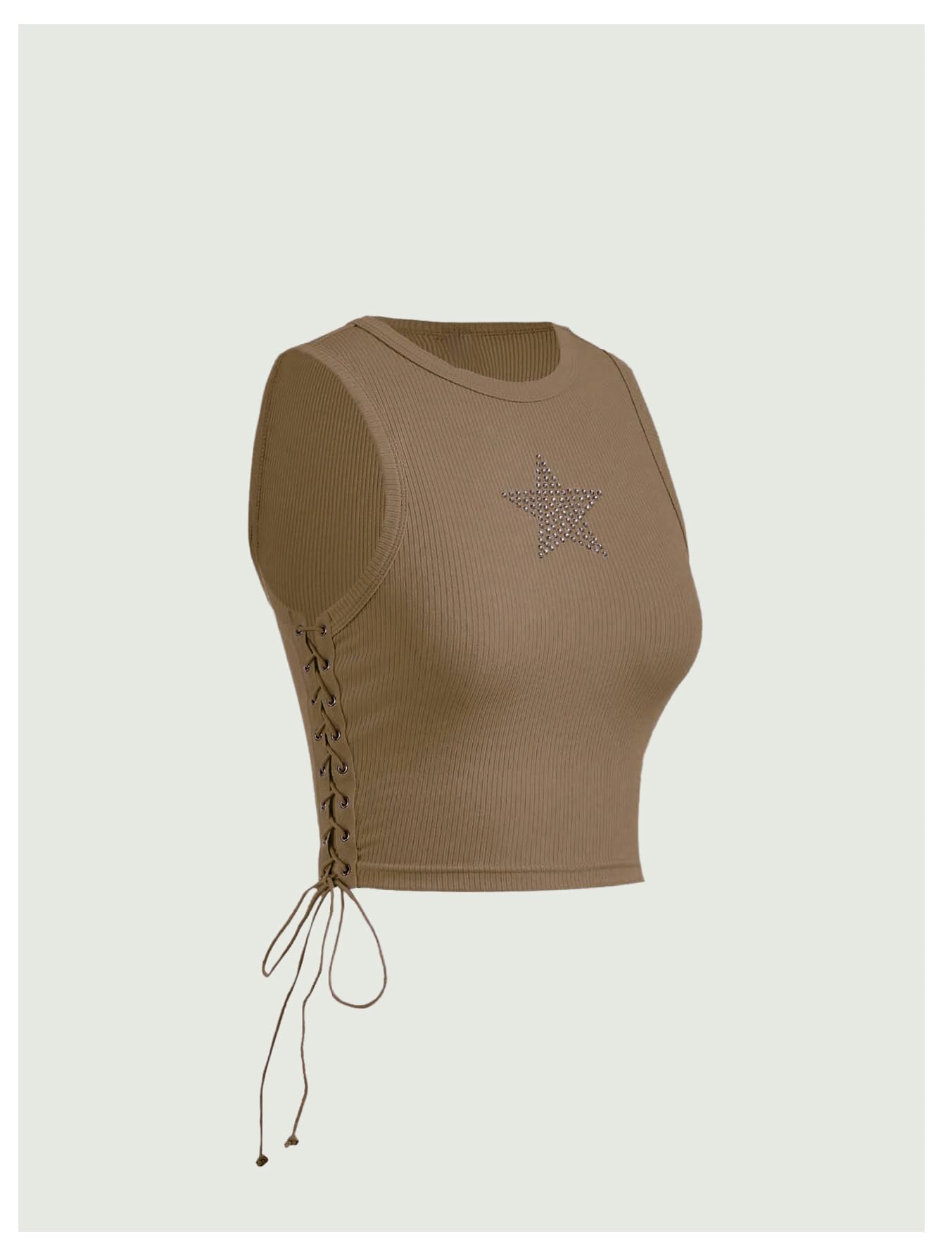 Sleeveless Star Rhinestone lace up slim fit crop tops for women