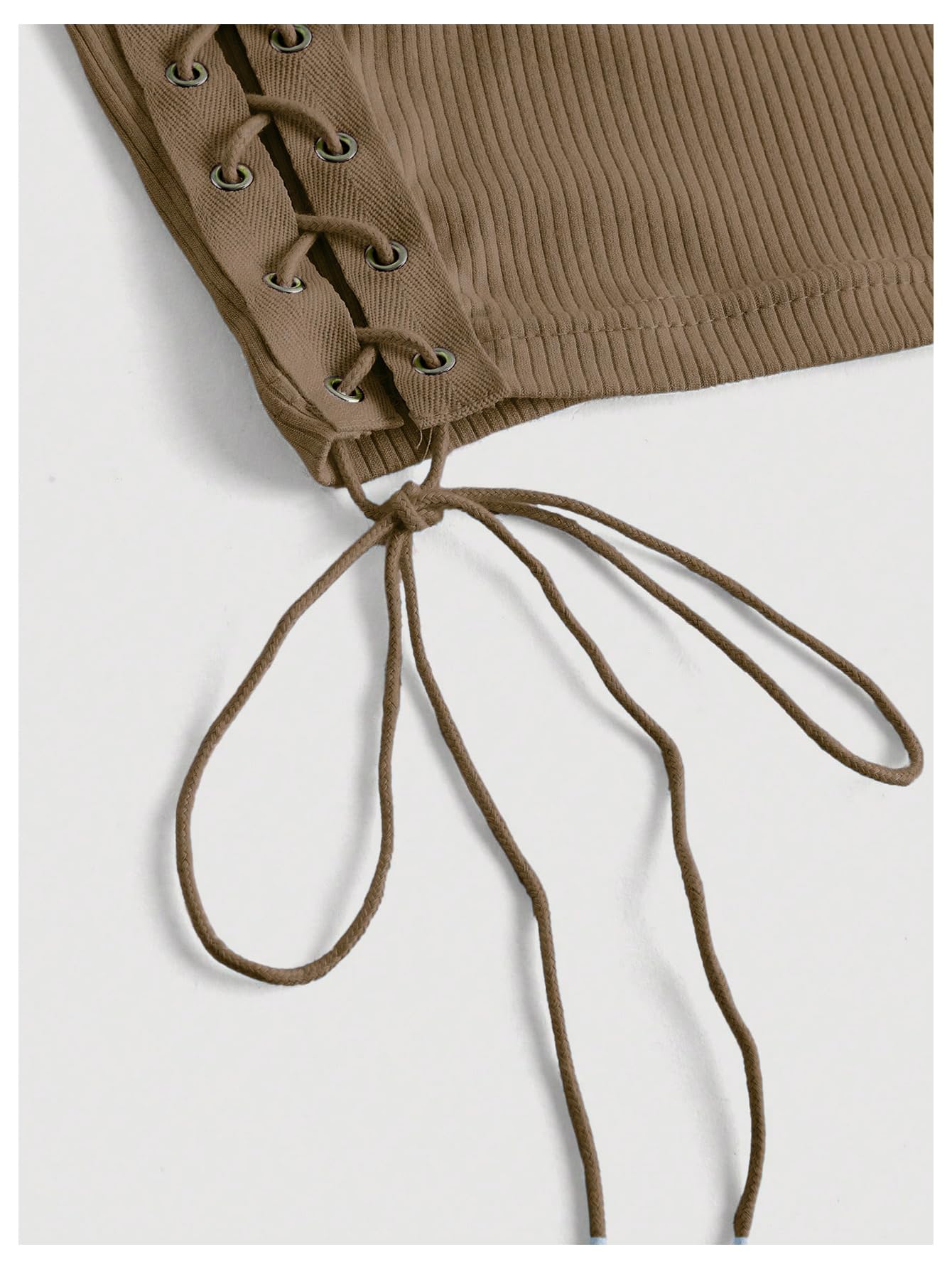 Feature: Star pattern, lace up, rhinestone, crewneck, slim fit, ribbed knit, concert outfits, vest tops for women, easy to pair with jeans, pants, shorts, etc