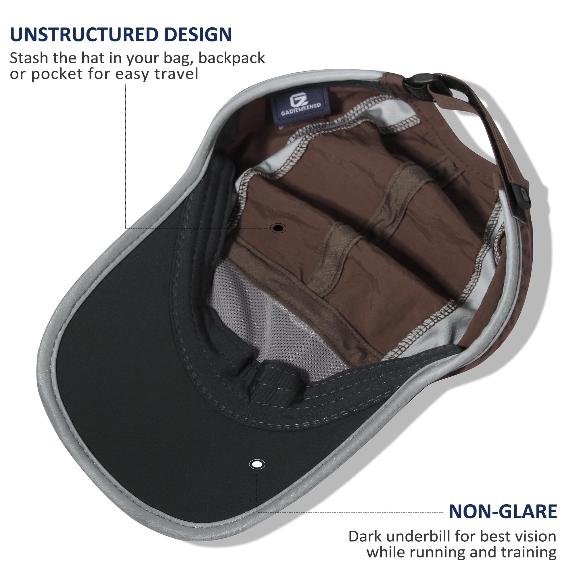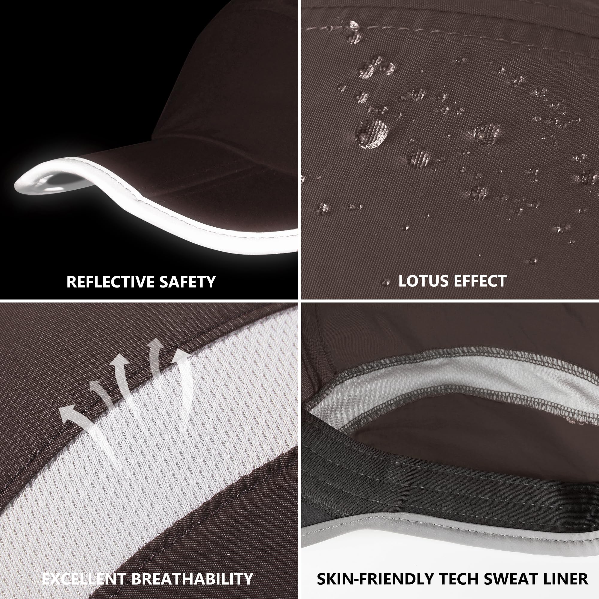 Reflective Foldable Brim: The brim with 3-panel bill design, can be folded and fit into any pocket or backpack. Reflective Brim for increased visibility and safety on low-light runs