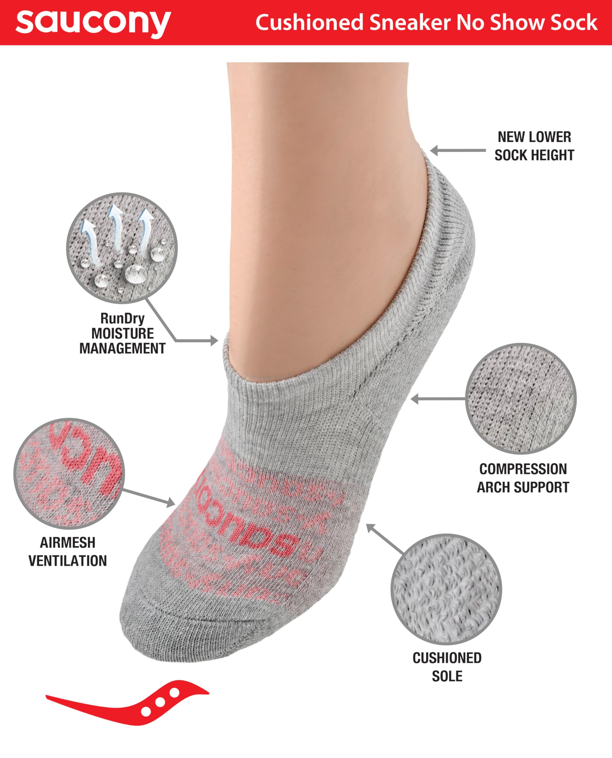 Description Saucony women's performance no show sock is a perfect combination of comfort and support. Great for the toughest training sessions. Features arch support, air mesh venting, and cushioned sole for lasting comfort. Run for Good - Saucony was founded way back in 1898. Ever since, we have been loyal to the sport, building goodness into every product and inviting millions around the world to run with us. At Saucony, we exist for runners, Runners inspire us, bringing us new idea, force us to be better, they drive our design and engineering. They keep us competitive. They keep us hungry. They keep us honest. This focus and passion fuels us as we strive to create the best running shoes and apparel on the planet. We leave work each day knowing we’ve done everything to make runners live just a little better.